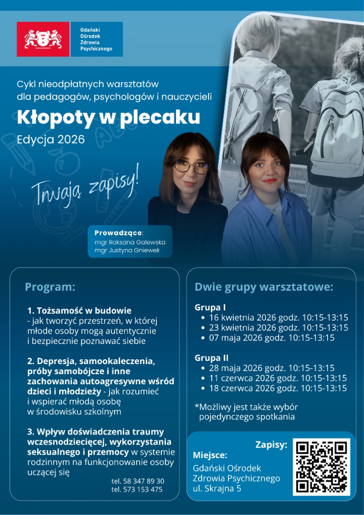 Miejsce:Gdański Ośrodek Zdrowia Psychicznego, ul. Skrajna 5 (stacjonarnie)